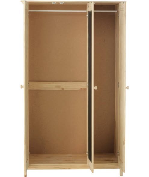Add style and functionality to your bedroom with this 3 Door Mirrored Wardrobe in Pine, designed to provide generous storage while enhancing the look of your space. The mirrored doors help reflect light, making your room feel brighter and more spacious, while the pine finish adds a warm, natural touch.